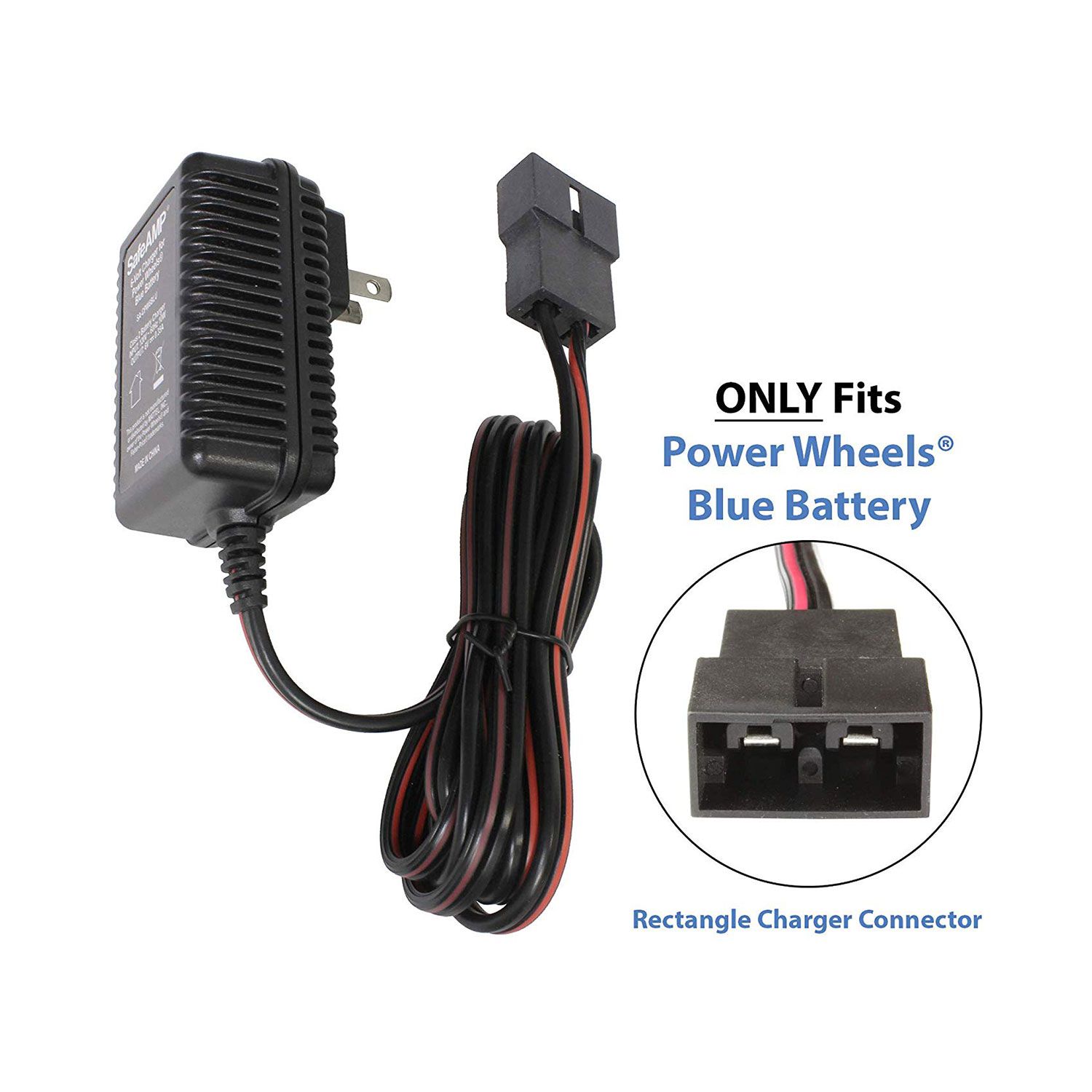 ONLY Compatible with Power Wheels 6-Volt Rechargeable Replacement Blue Battery Item #00801-1230 - 00801-1457 - 00801-1868 - 00801-1900 - 00801-0336 And SafeAmp 6V 4AH Battery Model #SA-PW6VBLU will NOT fit any other brands or models. Charger will ONLY fit the following Power Wheels: Thomas & Friends Thomas with Track, Lil' Quad, New Beetle, Harley-Davidson Rocker and Disney/Pixar Cars 2 Lil' Lightning McQueen.